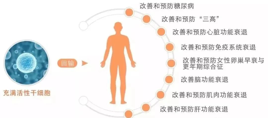 人體每個(gè)細(xì)胞都會(huì)隨著時(shí)間的推移而衰老、病變或凋亡,然后再新生,如不能及時(shí)替補(bǔ),人體便會(huì)出現(xiàn)衰老和各種急、慢性疾病的現(xiàn)象。要解決這個(gè)問(wèn)題,給體內(nèi)增加萬(wàn)能細(xì)胞和各種富有活力的細(xì)胞是抗衰老和減少各種急、慢性疾病的最佳的方法,因?yàn)檠a(bǔ)充細(xì)胞可以刺激新生新的細(xì)胞、修復(fù)受損的細(xì)胞,激活休眠的細(xì)胞;并起到帶動(dòng)自身的細(xì)胞活動(dòng)的作用。